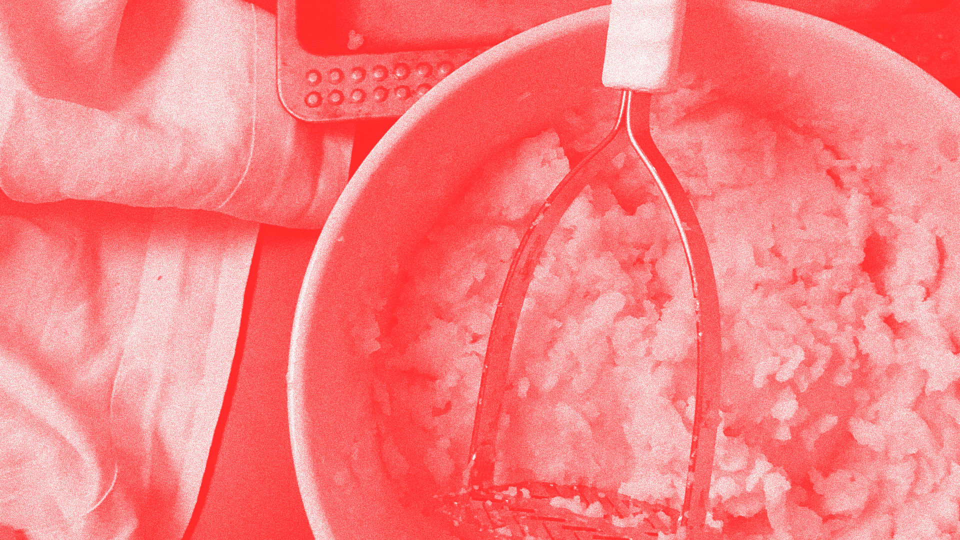 Faire cuire les pommes de terre, les laisser refroidir un peu, les peler et les passer au passe-vite au-dessus d’un récipient.