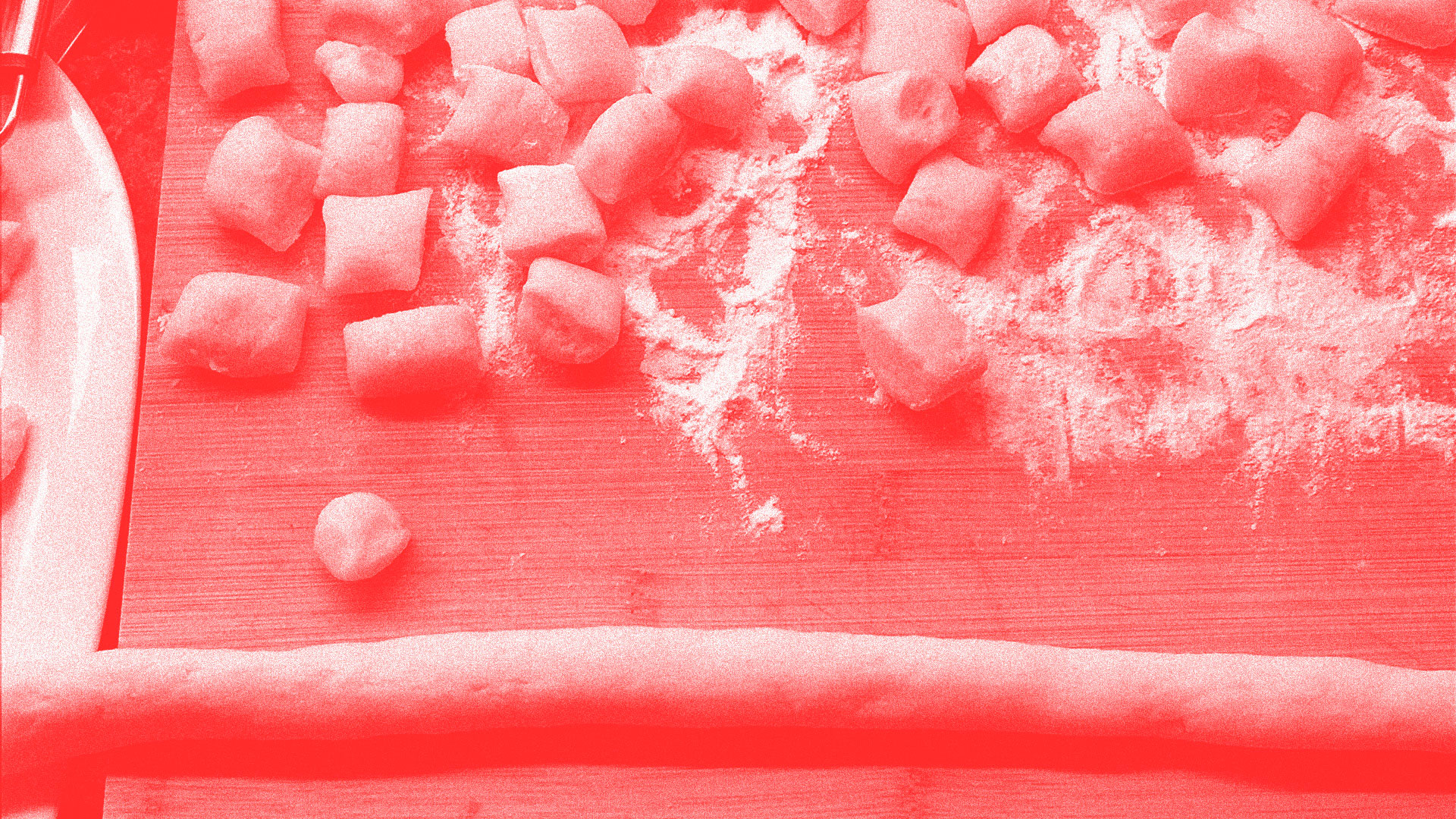 Sur une planche farinée, former des rouleaux de pâte d’env. 1 cm de Ø. Les couper en morceaux d’env. 2 cm de long.