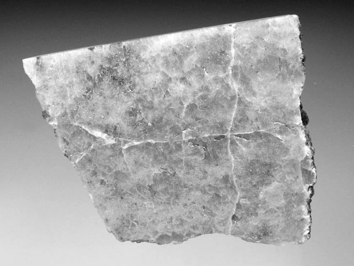 Image d’une pierre de chromite. Cette shergottite montre des cristaux d’olivine avec un coeur riche en fer avec des bords plus foncés riches en magnésium, dans une matrice fine de pyroxène, maskelynite, chromite, troilite.