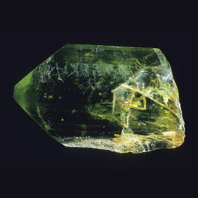 Cristaux d'olivine : minéral du groupe des silicates, sous-groupe des nésosilicates. Elle cristallise dans le système orthorhombique. La variété gemme de la forstérite est utilisée comme pierre fine en joaillerie sous le nom de péridot.